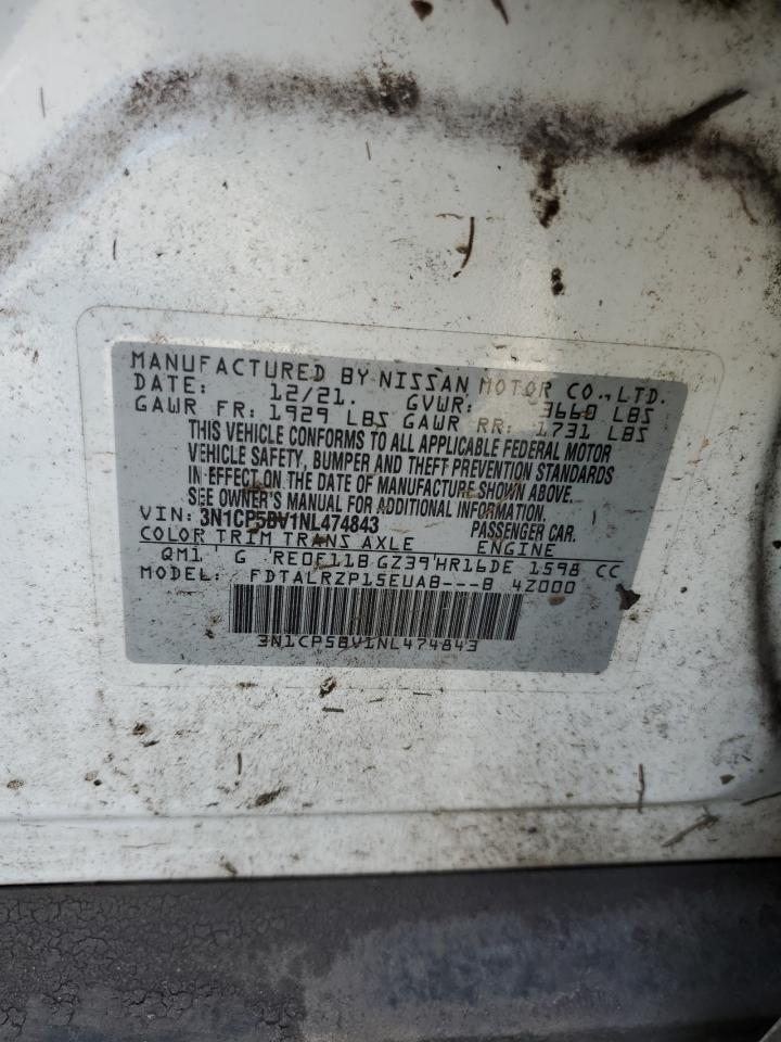 2022 NISSAN KICKS - 3N1CP5BV1NL474843, колір - Білий, 1.6, Бензин, із США