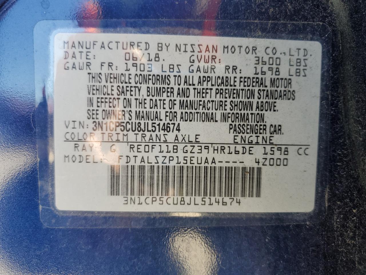 2018 NISSAN KICKS - 3N1CP5CU8JL514674, колір - Синій, 1.6, Бензин, із США