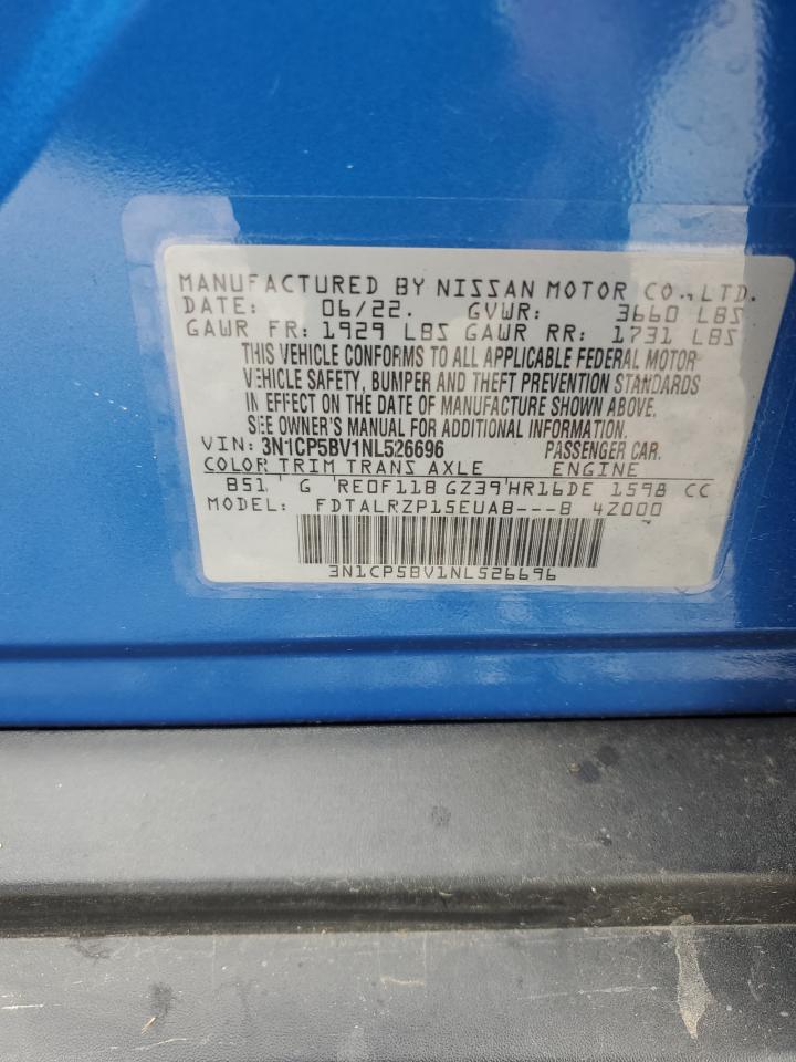 2022 NISSAN KICKS - 3N1CP5BV1NL526696, колір - Синій, 1.6, Бензин, із США