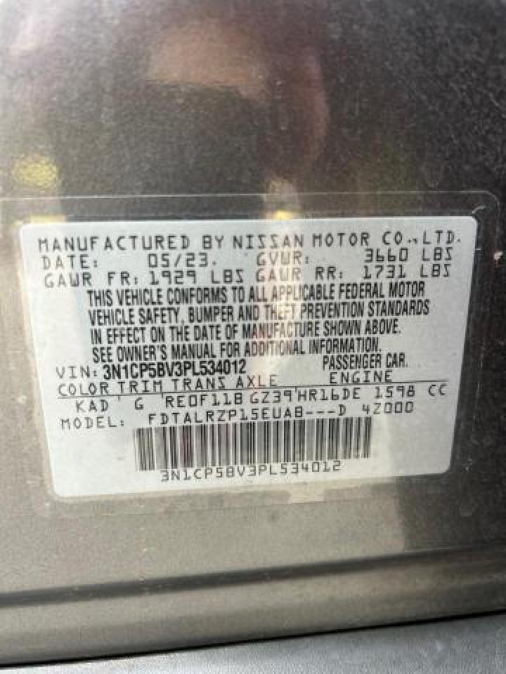 2023 NISSAN KICKS - 3N1CP5BV3PL534012, колір - Сірий, 1.6, Бензин, із США