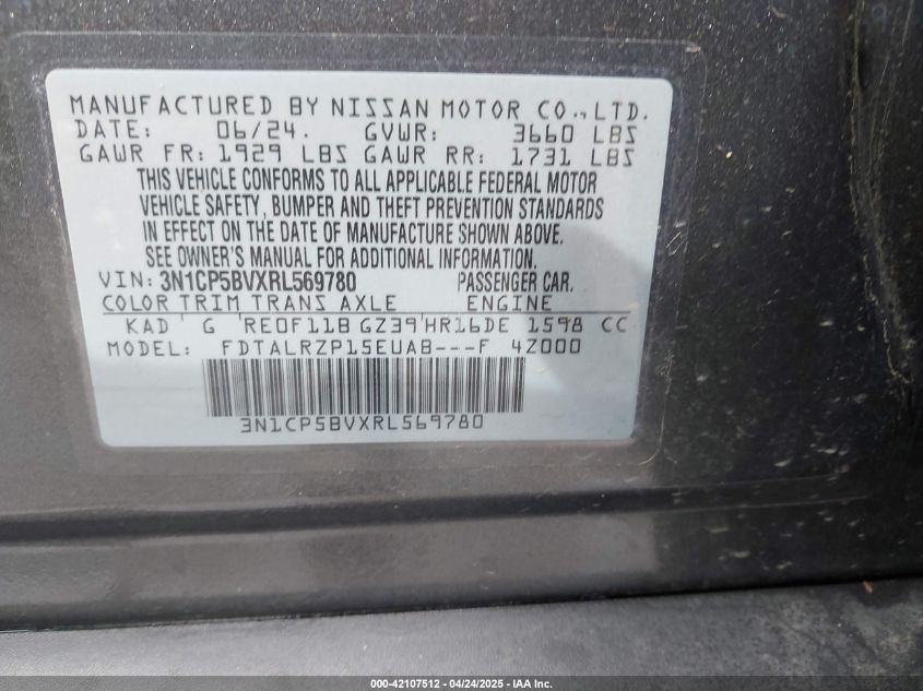 2024 NISSAN KICKS - 3N1CP5BVXRL569780, колір - Сірий, 1.6, Бензин, Передній привід із США