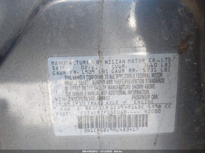 Колір СірийЦиліндри 4Привід Передній привідVIN 3N1CP5BV9ML483417Стан Заводиться та їде (перевірено)Ушкодження Передня або задня