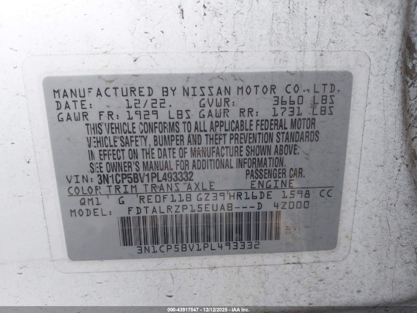 2023 NISSAN KICKS - 3N1CP5BV1PL493332, колір - Білий, 1.6, Бензин, Передній привід із США