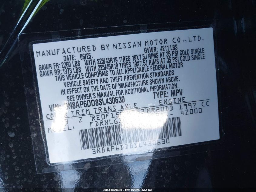 2025 NISSAN KICKS - 3N8AP6DD8SL430630, колір - Чорний, 2.0, Бензин, Повний привід із США