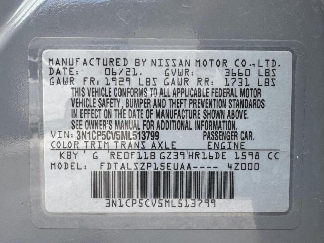 Колір СірийЦиліндри 4VIN 3N1CP5CV5ML513799Стан Заводиться та їде (перевірено)Ушкодження НезначніДата аукціона 2025-10-07