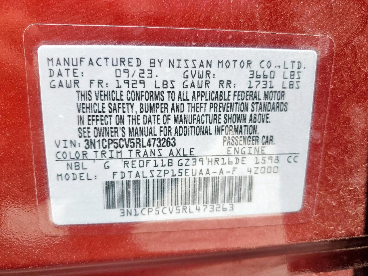 Колір БургундіяЦиліндри 4VIN 3N1CP5CV5RL473263Стан Заводиться та їде (перевірено)Ушкодження З боківДата аукціона 2025-10-07