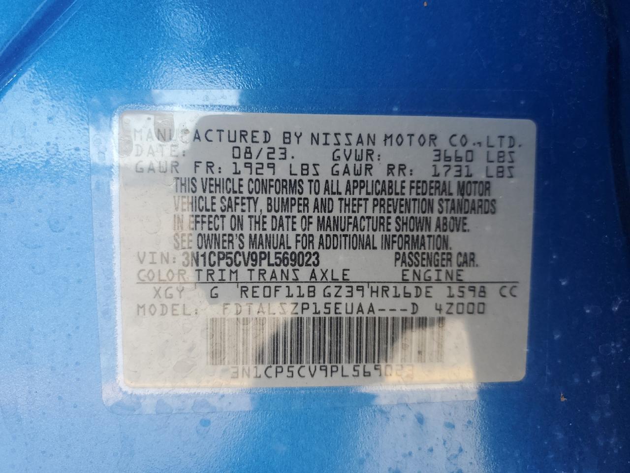 Колір СинійЦиліндри 4VIN 3N1CP5CV9PL569023Стан Заводиться та їде (перевірено)Ушкодження ЗадняДата аукціона 2025-10-06