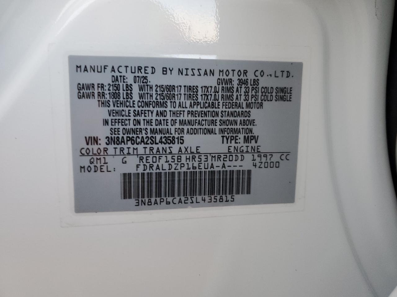2025 NISSAN KICKS - 3N8AP6CA2SL435815, колір - Білий, 2.0, Бензин, із США