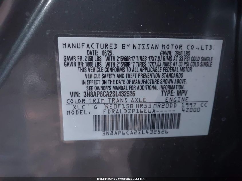 2025 NISSAN KICKS - 3N8AP6CA2SL432526, колір - Сірий, 2.0, Бензин, Передній привід із США