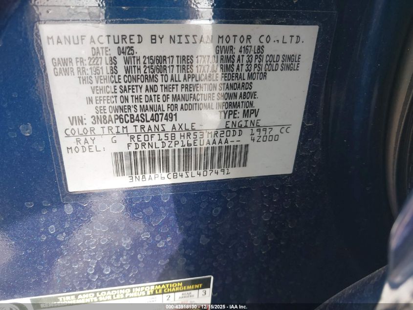 2025 NISSAN KICKS - 3N8AP6CB4SL407491, колір - Синій, 2.0, Бензин, Повний привід із США