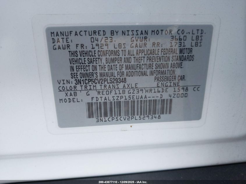 2023 NISSAN KICKS - 3N1CP5CV2PL529348, колір - Білий, 1.6, Бензин, Передній привід із США