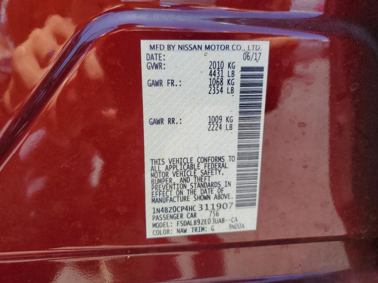 2017 NISSAN LEAF - 1N4BZ0CP4HC311907, колір - Бордовий, U, Електричний, із США
