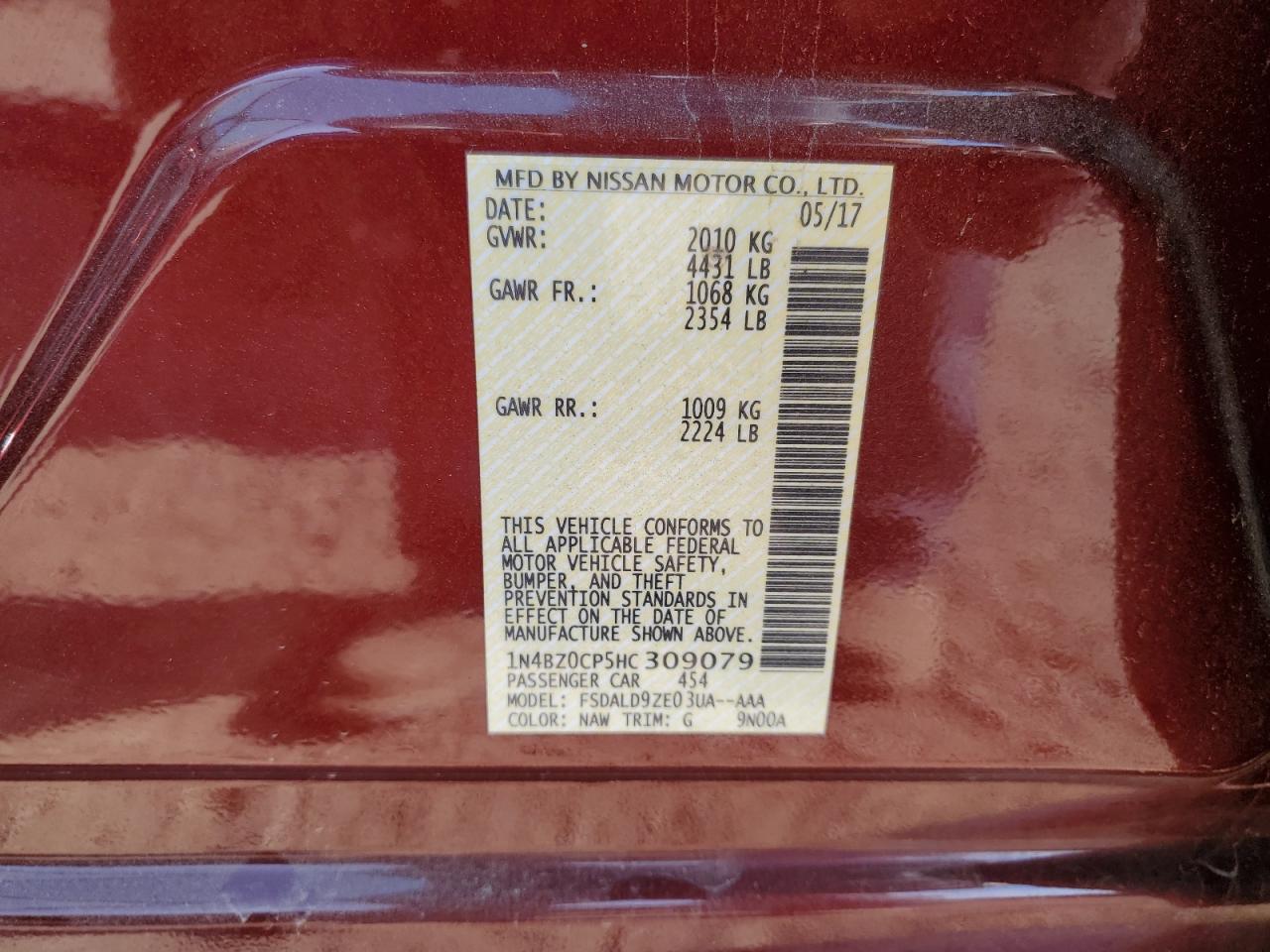 2017 NISSAN LEAF - 1N4BZ0CP5HC309079, колір - Бургундія, U, Електричний, із США