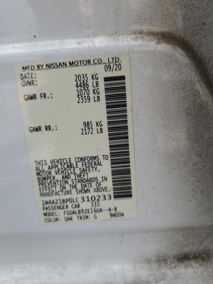 2020 NISSAN LEAF - 1N4AZ1BP0LC310233, колір - Білий, U, Електричний, із США