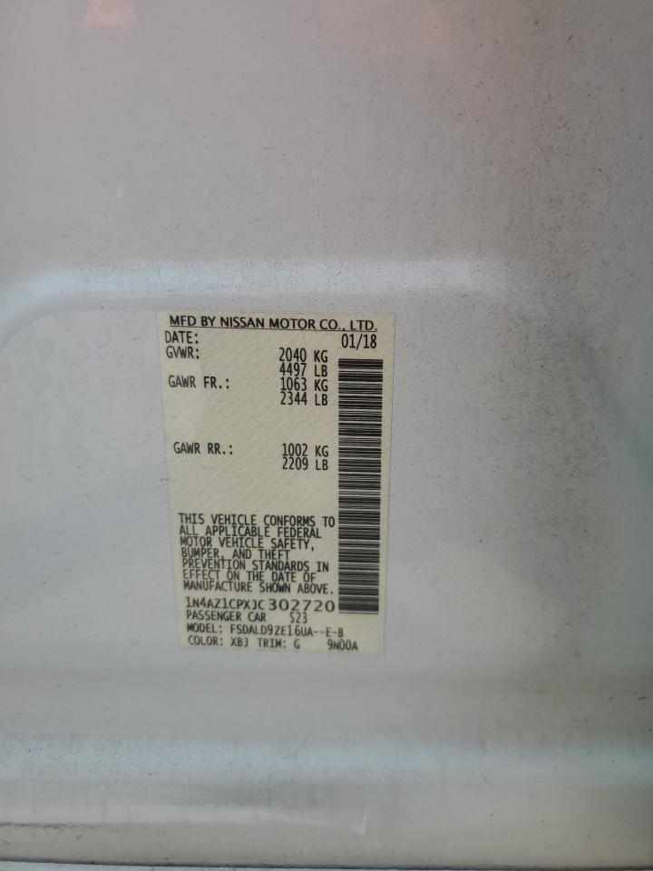 2018 NISSAN LEAF - 1N4AZ1CPXJC302720, колір - Білий, U, Електричний, із США