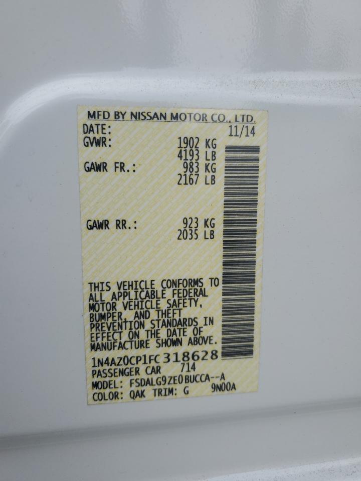 2015 NISSAN LEAF - 1N4AZ0CP1FC318628, колір - Білий, U, Електричний, із США