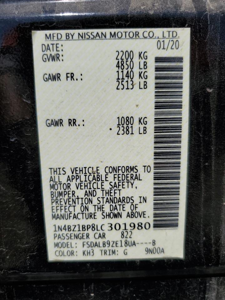 2020 NISSAN LEAF - 1N4BZ1BP8LC301980, колір - Чорний, U, Електричний, із США