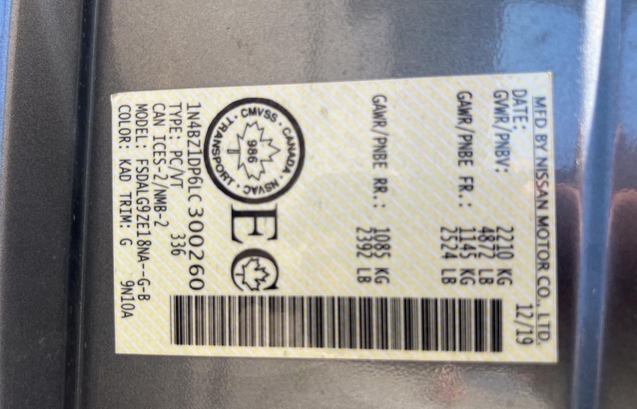 Колір СірийЦиліндри UVIN 1N4BZ1DP6LC300260Стан Заводиться та їде (перевірено)Ушкодження ЗадняДата аукціона 2025-10-14