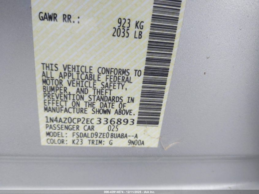 Колір СрібнийПривід Передній привідVIN 1N4AZ0CP2EC336893Стан НевідомоУшкодження Передня або задня