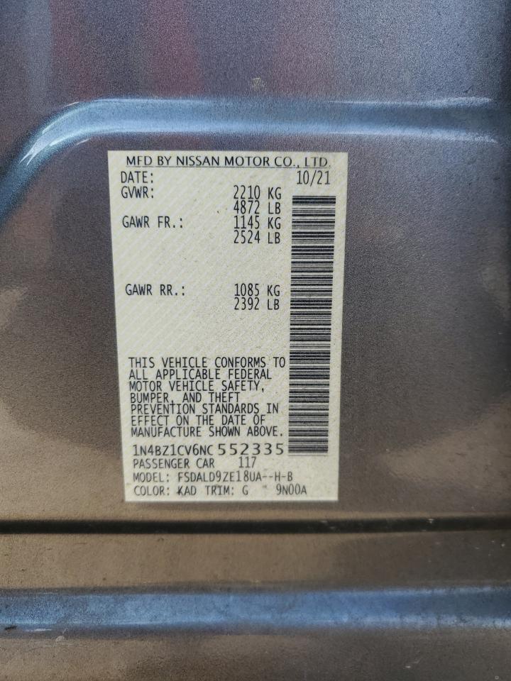 2022 NISSAN LEAF - 1N4BZ1CV6NC552335, колір - Сірий, U, Електричний, із США