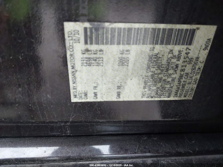2011 NISSAN MAXIMA - 1N4AA5AP9BC813547, колір - Чорний, 3.5, Бензин, Передній привід із США