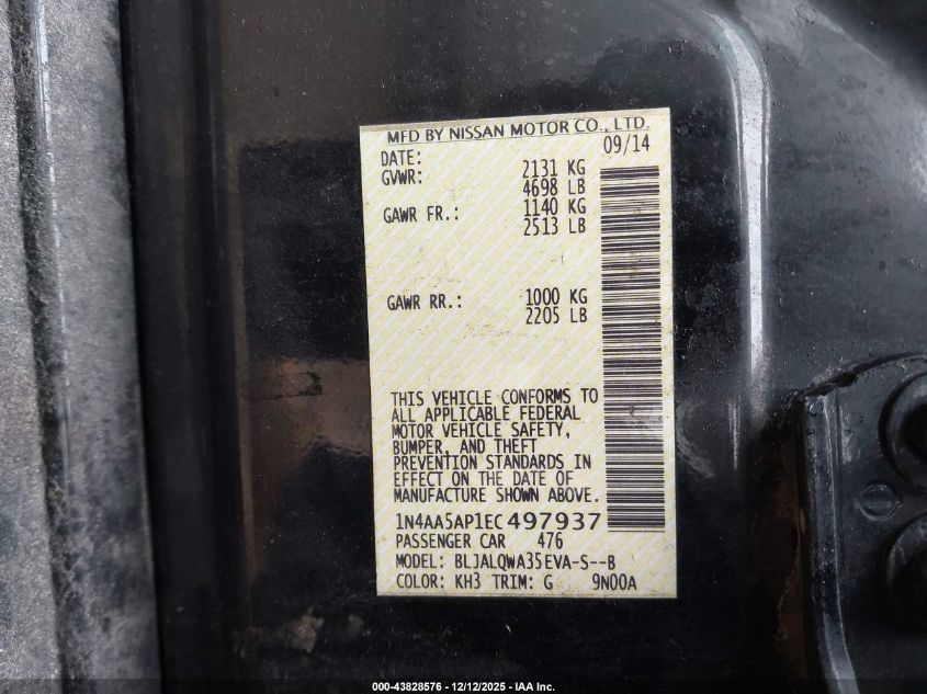 2014 NISSAN MAXIMA - 1N4AA5AP1EC497937, колір - Чорний, 3.5, Бензин, Передній привід із США