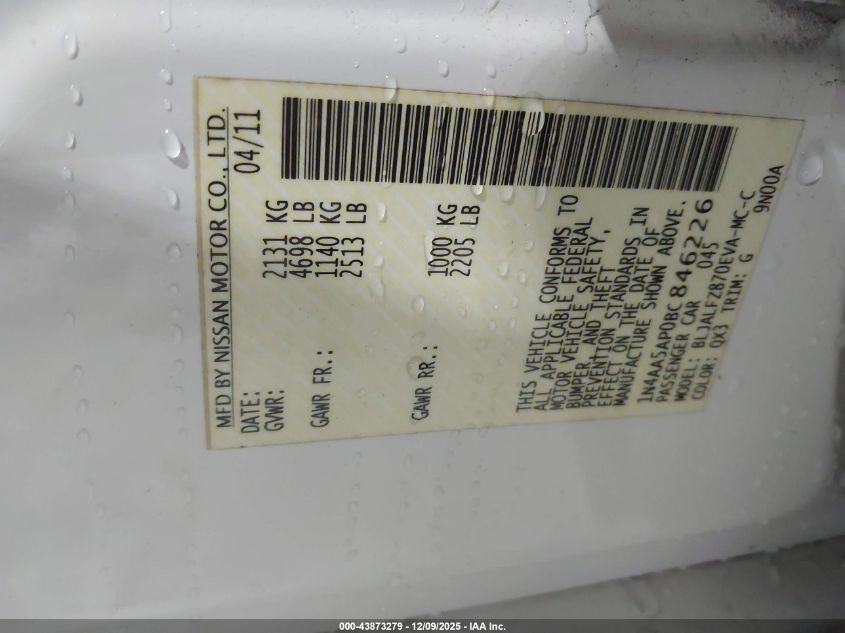 Колір БілийЦиліндри 6Привід Передній привідVIN 1N4AA5AP0BC846226Стан Заводиться та їде (перевірено)Ушкодження Передня або задня
