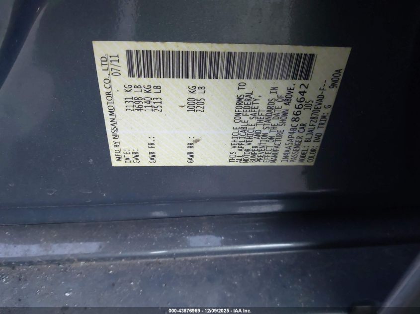 Колір СірийЦиліндри 6Привід Передній привідVIN 1N4AA5AP4BC866642Стан Заводиться та їде (перевірено)Ушкодження Передня і задня