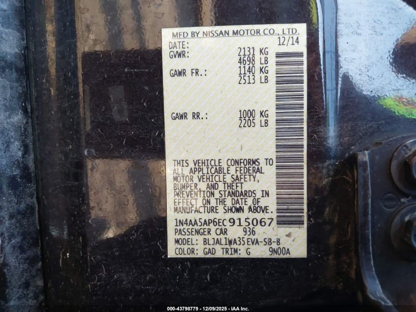 2014 NISSAN MAXIMA - 1N4AA5AP6EC915067, колір - Бургундія, 3.5, Бензин, Передній привід із США