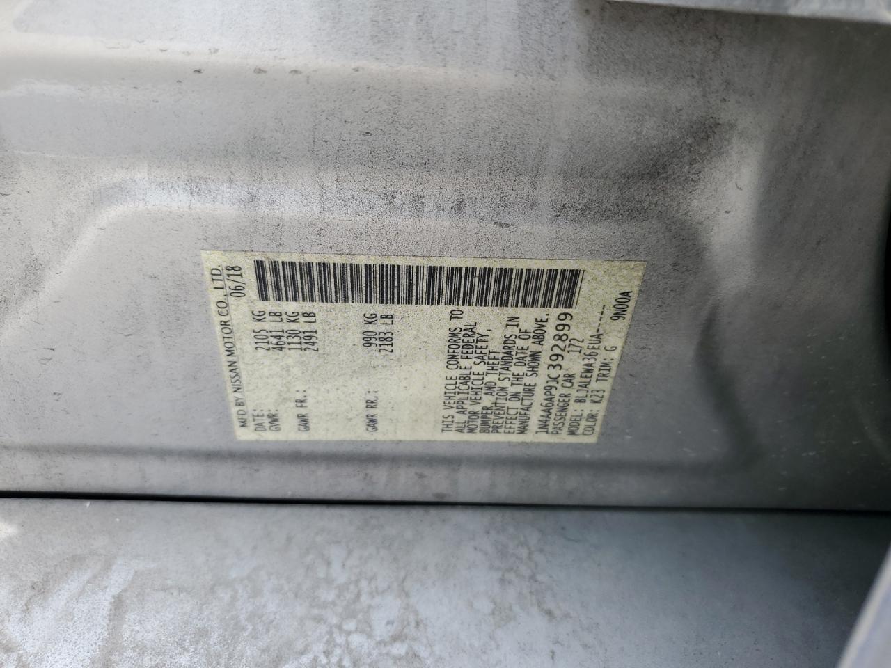 Колір БілийЦиліндри 6VIN 1N4AA6AP9JC392899Стан НевідомоУшкодження Передня або задняДата аукціона 2025-10-07
