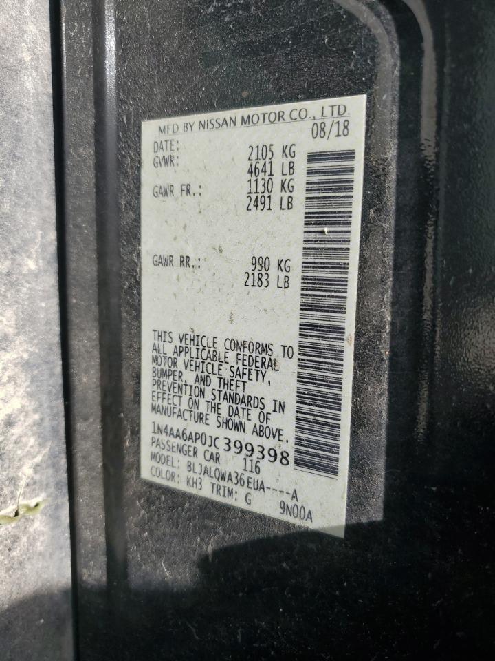 Колір ЧорнийЦиліндри 6VIN 1N4AA6AP0JC399398Стан НевідомоУшкодження Передня або задня