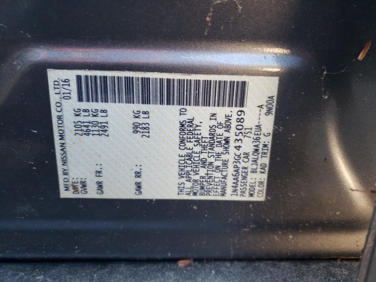 2016 NISSAN MAXIMA - 1N4AA6AP3GC435089, колір - Чорний, 3.5, Бензин, із США
