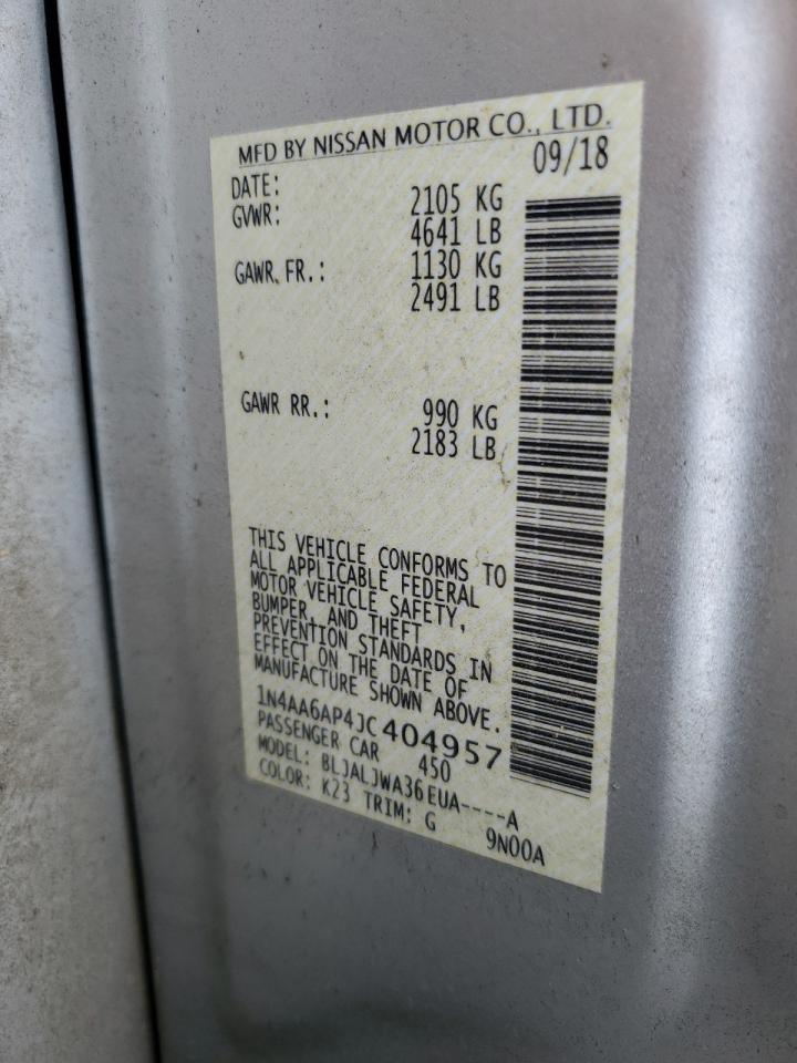 2018 NISSAN MAXIMA - 1N4AA6AP4JC404957, колір - Срібний, 3.5, Бензин, із США