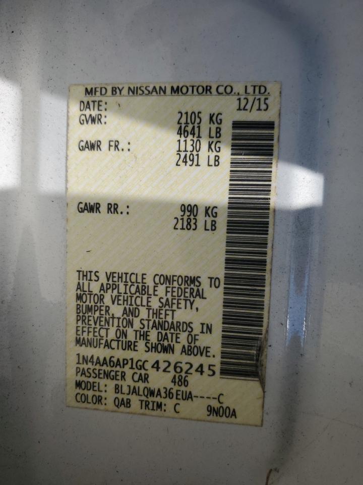2016 NISSAN MAXIMA - 1N4AA6AP1GC426245, колір - Білий, 3.5, Бензин, із США