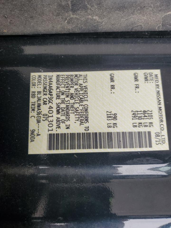 2016 NISSAN MAXIMA - 1N4AA6AP3GC401301, колір - Чорний, 3.5, Бензин, із США