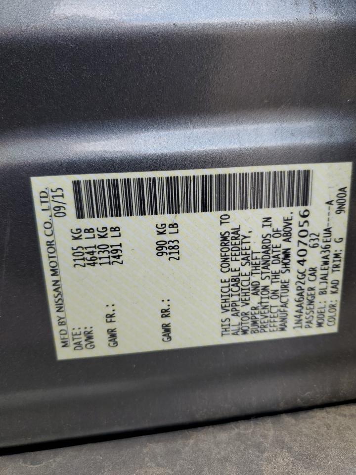 2016 NISSAN MAXIMA - 1N4AA6AP2GC407056, колір - Сірий, 3.5, Бензин, із США