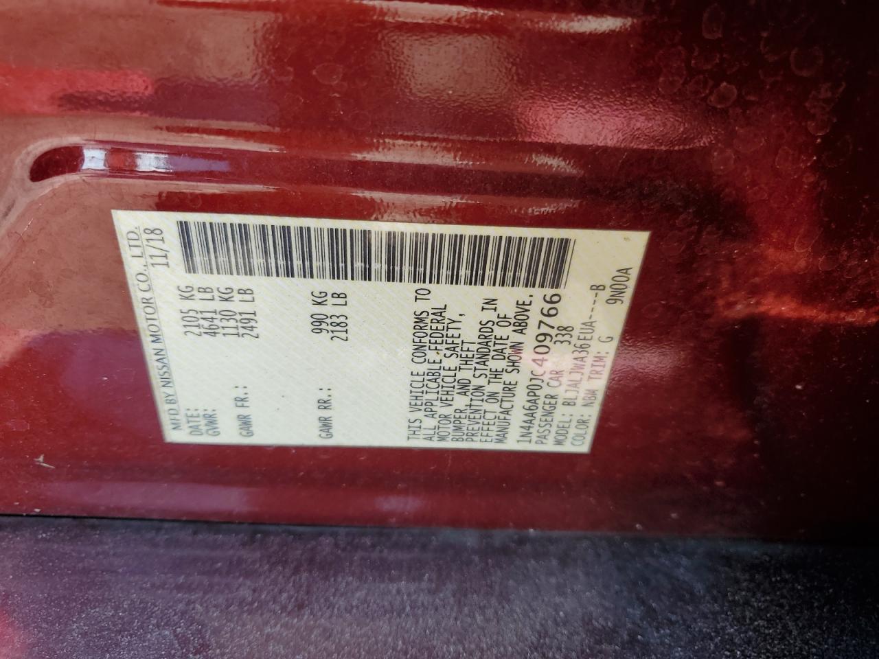 Колір ЧервонийЦиліндри 6VIN 1N4AA6AP0JC409766Стан Заводиться та їде (перевірено)Ушкодження Передня або задняДата аукціона 2025-10-06