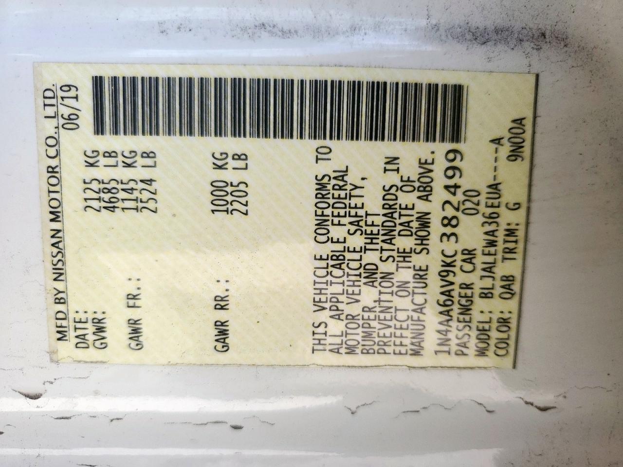 Колір БілийЦиліндри 6VIN 1N4AA6AV9KC382499Стан Заводиться та їде (перевірено)Ушкодження Передня або задня