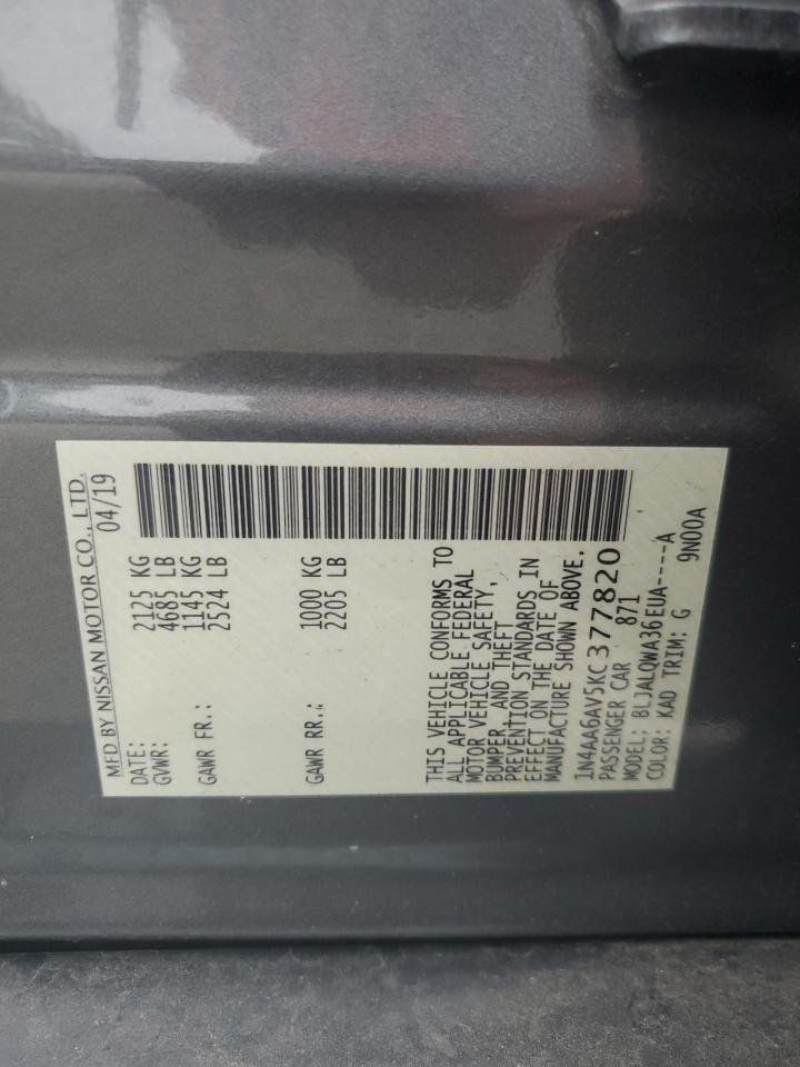 2019 NISSAN MAXIMA - 1N4AA6AV5KC377820, колір - Сірий, 3.5, Бензин, із США