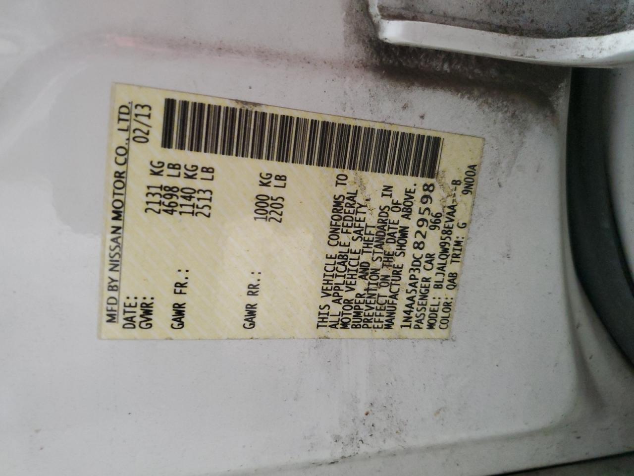 2013 NISSAN MAXIMA - 1N4AA5AP3DC829598, колір - Білий, 3.5, Бензин, із США