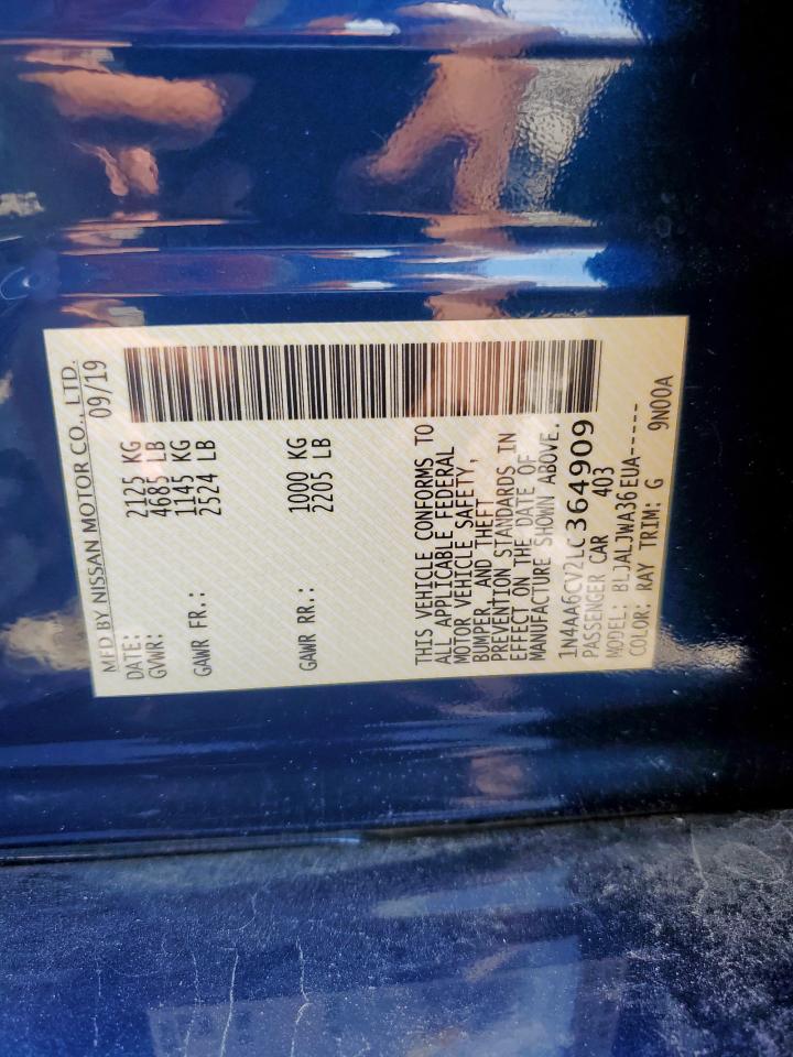 2020 NISSAN MAXIMA - 1N4AA6CV2LC364909, колір - Синій, 3.5, Бензин, із США