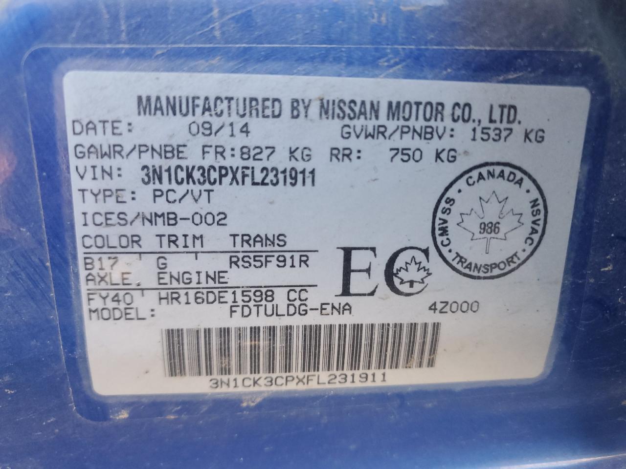 2015 NISSAN MICRA - 3N1CK3CPXFL231911, колір - Синій, 1.6, Бензин, із США