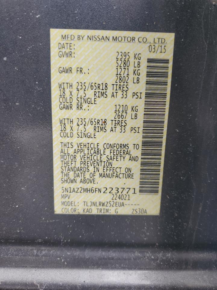 2015 NISSAN MURANO - 5N1AZ2MH6FN223771, колір - Сірий, 3.5, Бензин, Повний привід із США