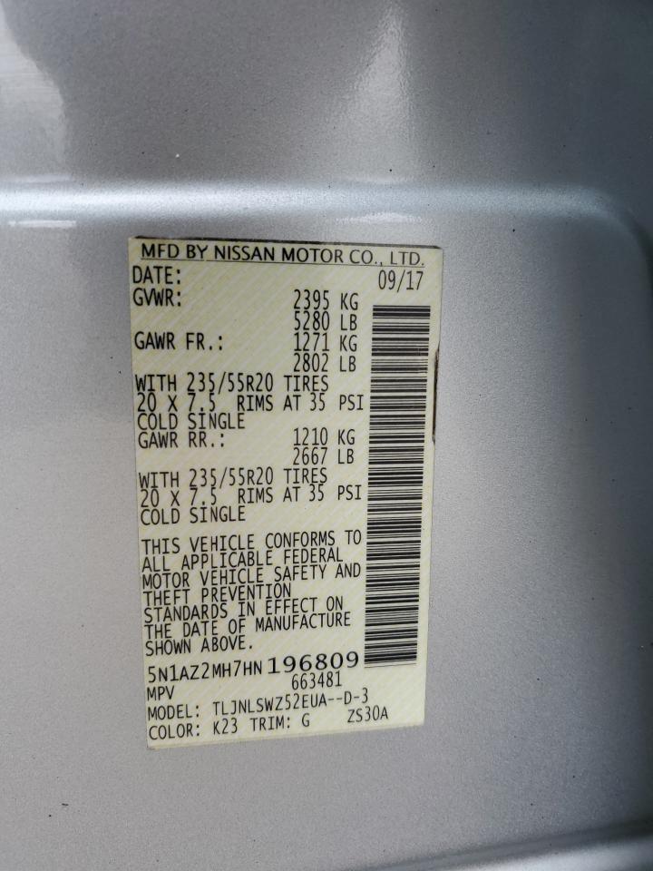 2017 NISSAN MURANO - 5N1AZ2MH7HN196809, колір - Срібний, 3.5, Бензин, Повний привід із США