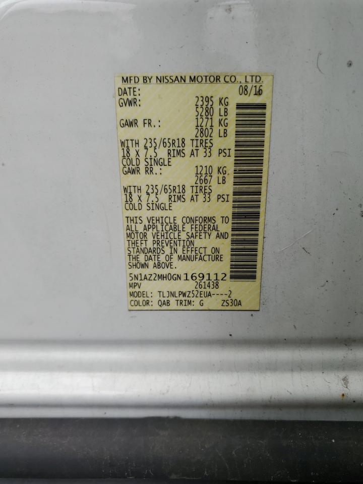 2016 NISSAN MURANO - 5N1AZ2MH0GN169112, колір - Білий, 3.5, Бензин, Повний привід із США