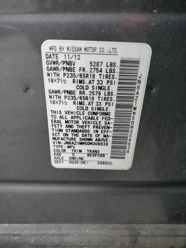 2013 NISSAN MURANO - JN8AZ1MW5DW309839, колір - Срібний, 3.5, Бензин, Повний привід із США