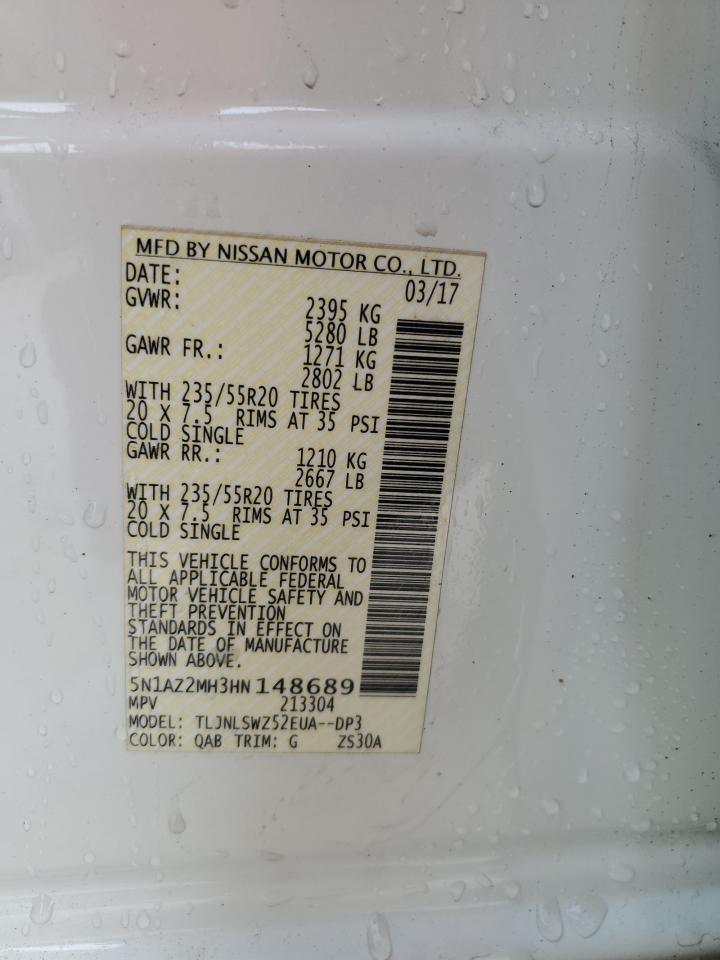 2017 NISSAN MURANO - 5N1AZ2MH3HN148689, колір - Білий, 3.5, Бензин, Повний привід із США