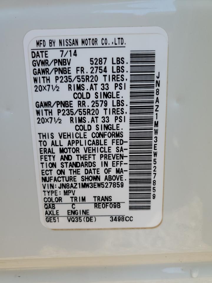 2014 NISSAN MURANO - JN8AZ1MW3EW527859, колір - Білий, 3.5, Бензин, Повний привід із США
