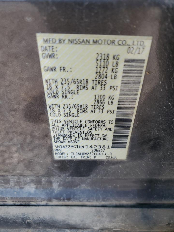 2017 NISSAN MURANO - 5N1AZ2MG1HN142381, колір - Коричневий, 3.5, Бензин, із США