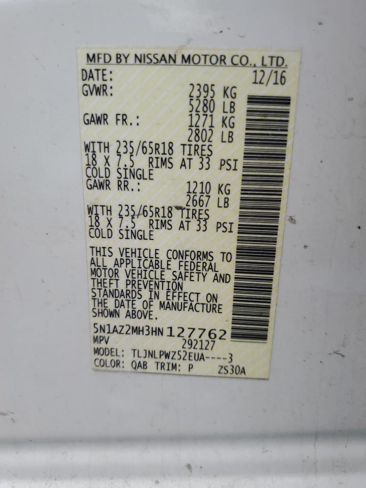 2017 NISSAN MURANO - 5N1AZ2MH3HN127762, колір - Білий, 3.5, Бензин, Повний привід із США